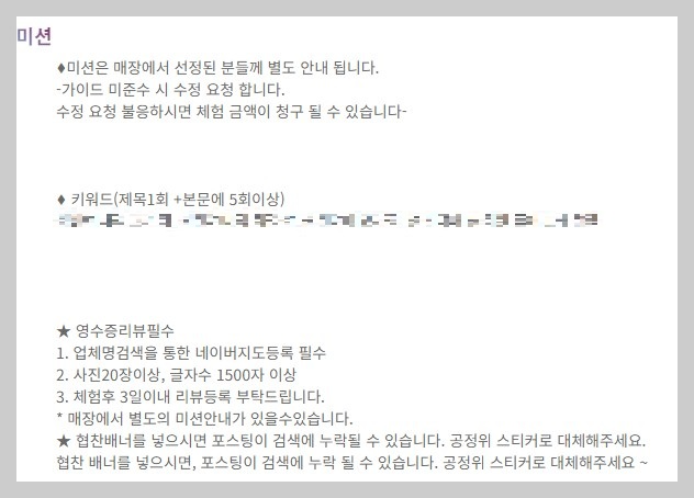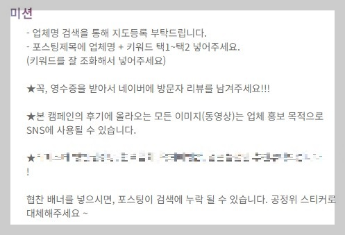 주의할 것은 편파적인 체험단 만을 위한 포스팅을 하기보다는 정보성 혹은 일상적인 포스팅도 적절히 섞어주시길 추천드립니다.