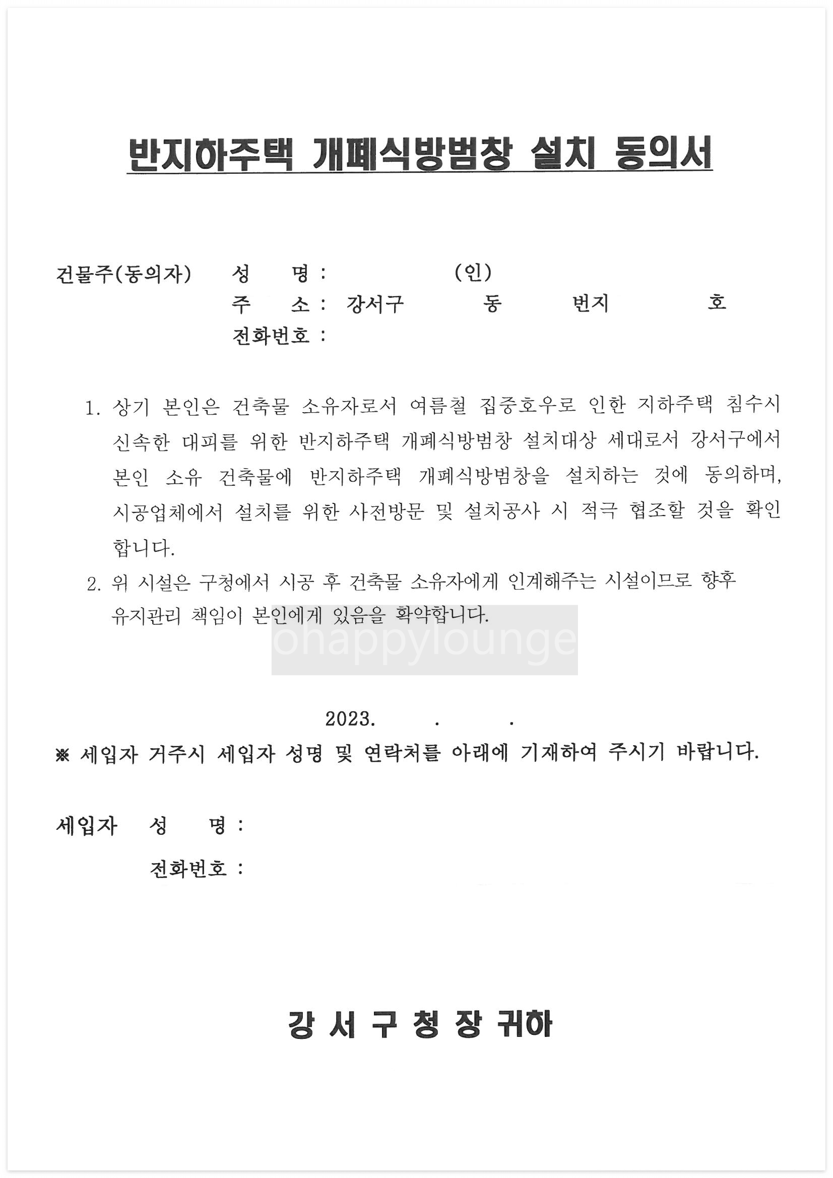 또한 주의할 점은 동의서 제출에 대한 기한이 있다는 점입니다. 강서구의 경우 7월 14일까지 접수를 완료하여야 하며 인천광역시는 예산소지시까지입니다. 만약 이 기간이 넘어간다면 설치 의사가 없는 것으로 간주하여 사업 대상에서 제외되게 됩니다. 강서구의 경우는 전액 지원이니 이런 기회를 놓치지 마시고 꼭 제때 신청하셔서 개폐식 방범창을 통해 안전과 자산 보호라는 두 마리 토끼를 무료로 지원받으세요!