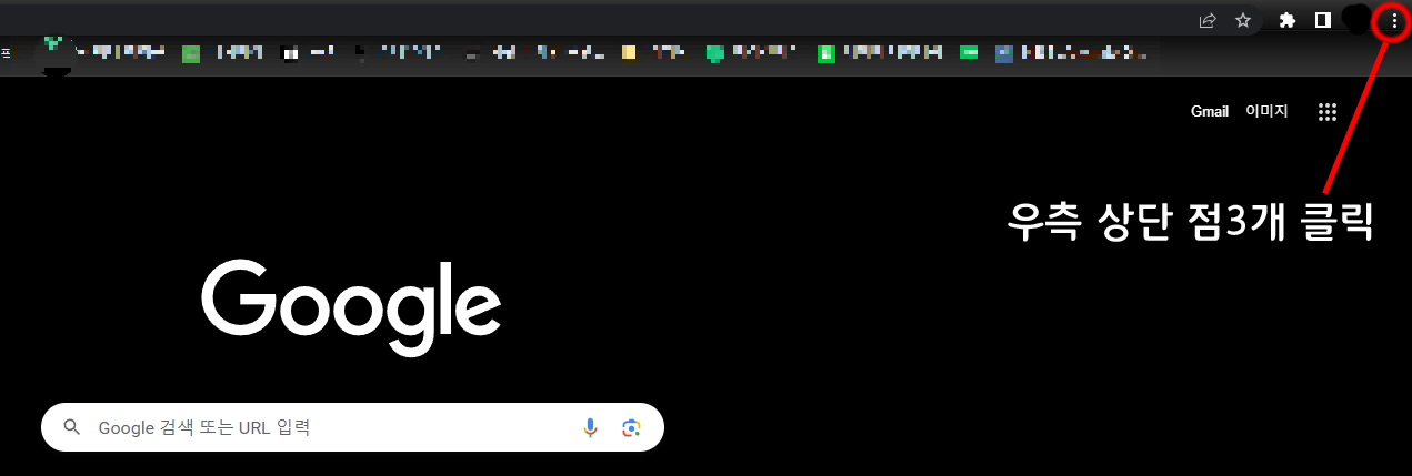 1. 우선, 크롬에 들어가셔서 우측 상단에 세로 점 3개 아이콘을 클릭해 줍니다. 아래 이미지를 참조해 주세요!