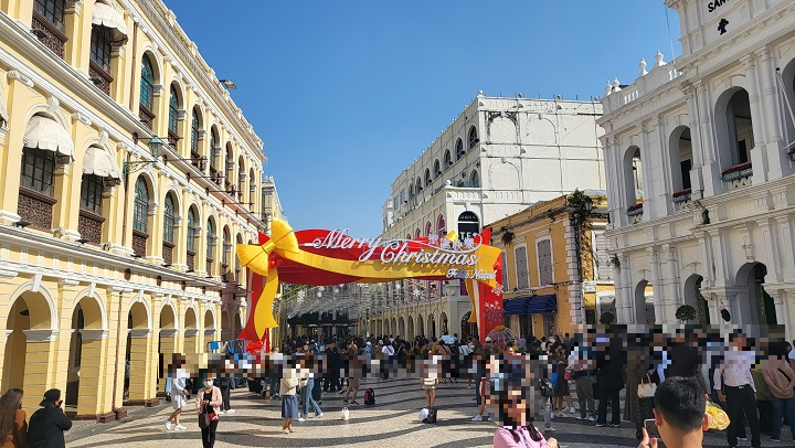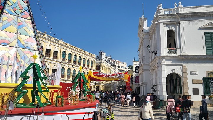 첫 번째는 바로 세나도 광장입니다. 마카오 역사지구의 첫 출발지가 되기도 합니다. 제가 방문했을 때는 크리스마스 분위기가 한창이었습니다. 마치 유럽을 연상시키는 건축물을 따라 걷는 것만으로도 행복한 경험이었는데요. 특이한 것은 이 오래된 건물들을 모두 음식점, 상점 등으로 사용하고 있었습니다. 그만큼 관리를 잘하고 있다는 인상을 느꼈어요.