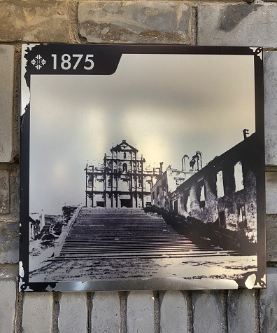 마카오 최대 랜드마크인 성 바오로 성당입니다. 성 바오로 성당으로 가는 길에 유명한 육포거리도 있어서 관광 및 쇼핑하기도 좋은 코스인데요(참고로 육포는 기내 반입이 불가하여 한국 비행 전 모두 드셔야 합니다). 화재로 대부분 성당은 파괴되었지만 남쪽의 외벽은 남아있습니다. 아래 좌측 사진은 1875년 당시의 모습과 우측은 현재의 모습입니다. 150년 가까이 지났지만 당시의 모습을 잘 간직하고 있어요.